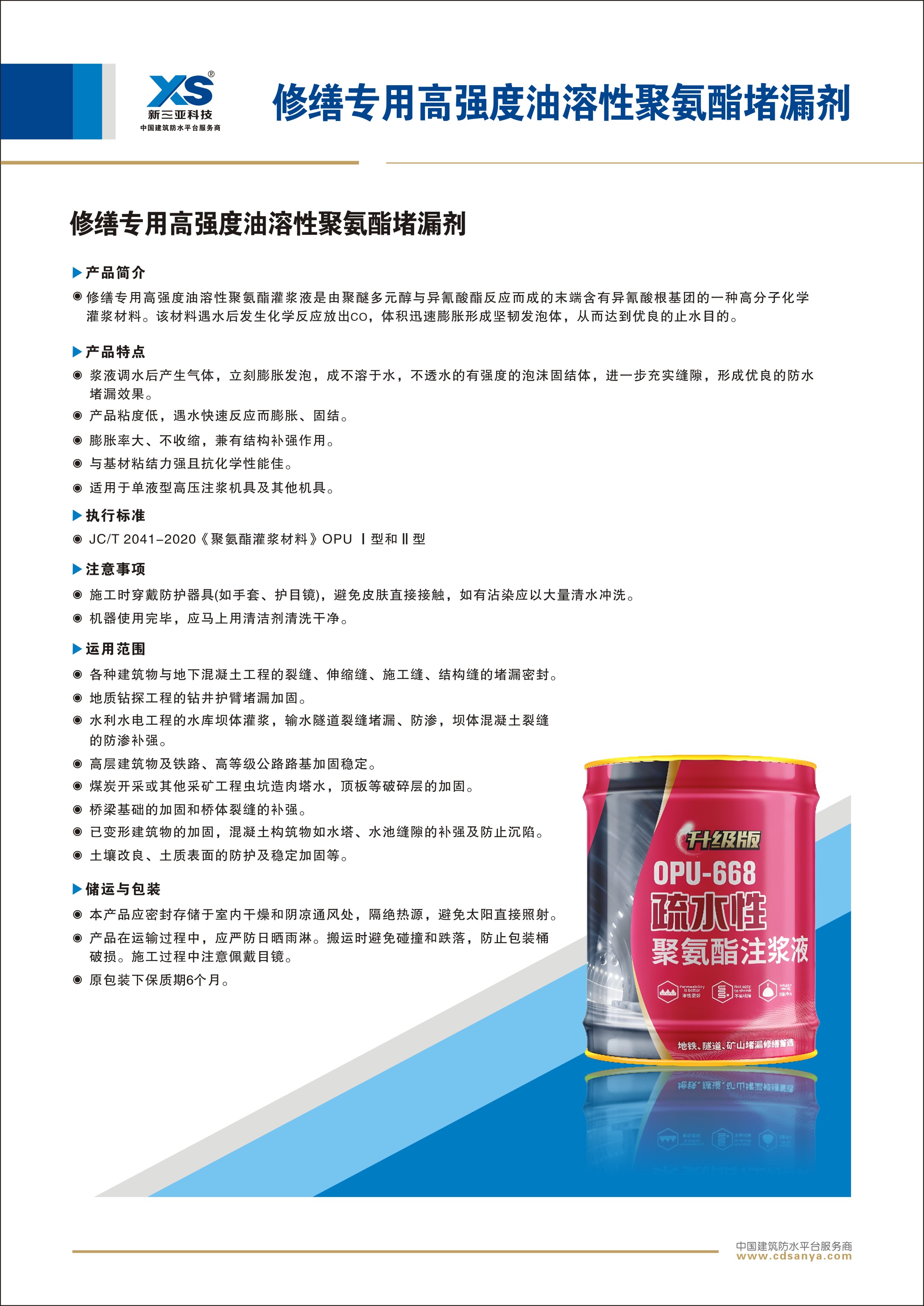| 高強度油溶性聚氨酯堵漏劑(Ⅱ型 疏水性) | |
